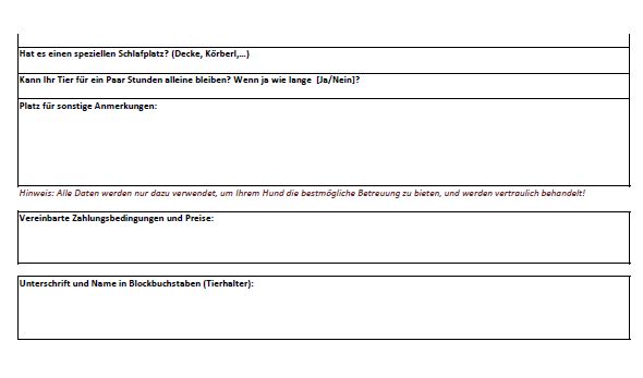 Um Ihr Tier bestmöglich betreuen zu können, möchte ich Sie bitten, vor der ersten Betreuung die folgende Checkliste auszufüllen. Alle Daten werden vertraulich behandelt!